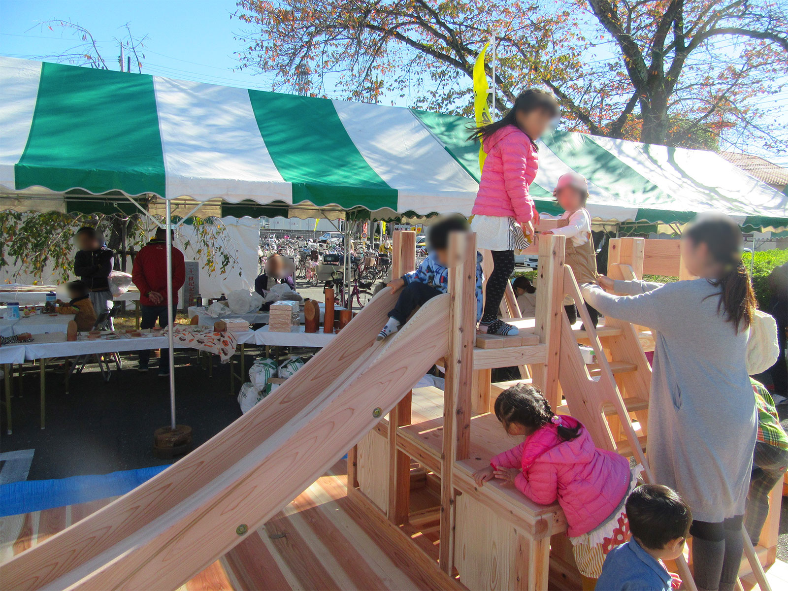 「木て見て飯能 木のある暮らし」をテーマに西川材に関わる各業界から、木製遊具の体験もあります。