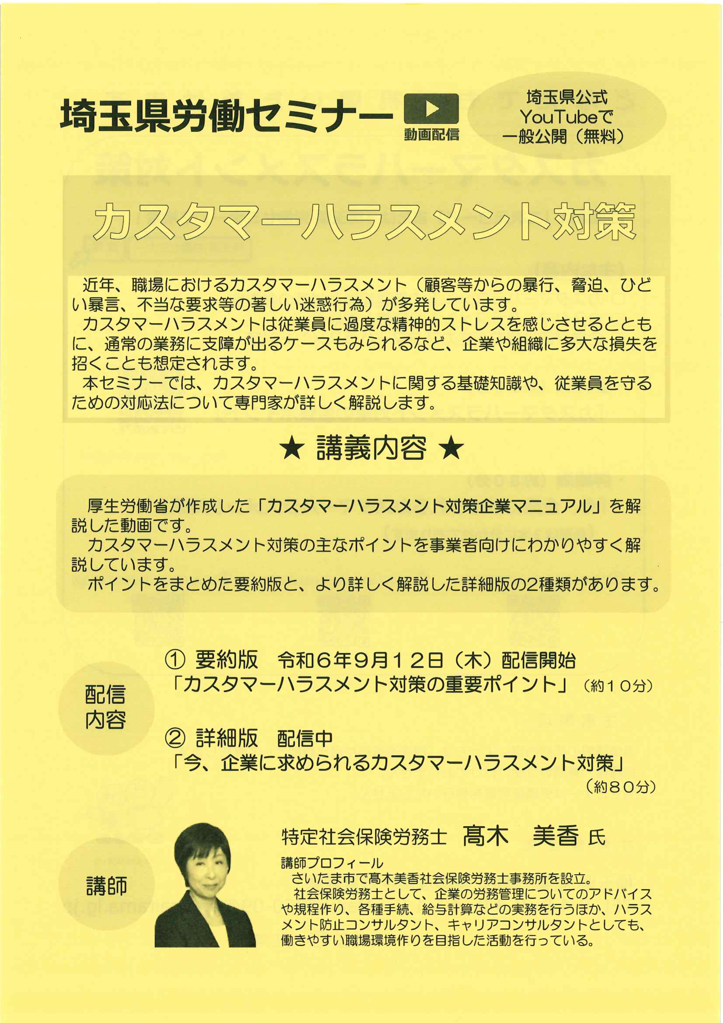 近年、職場におけるカスタマーハラスメント(顧客等からの暴行、脅迫、ひどい暴言、不当の要求の著しい迷惑行為)が多発しています。