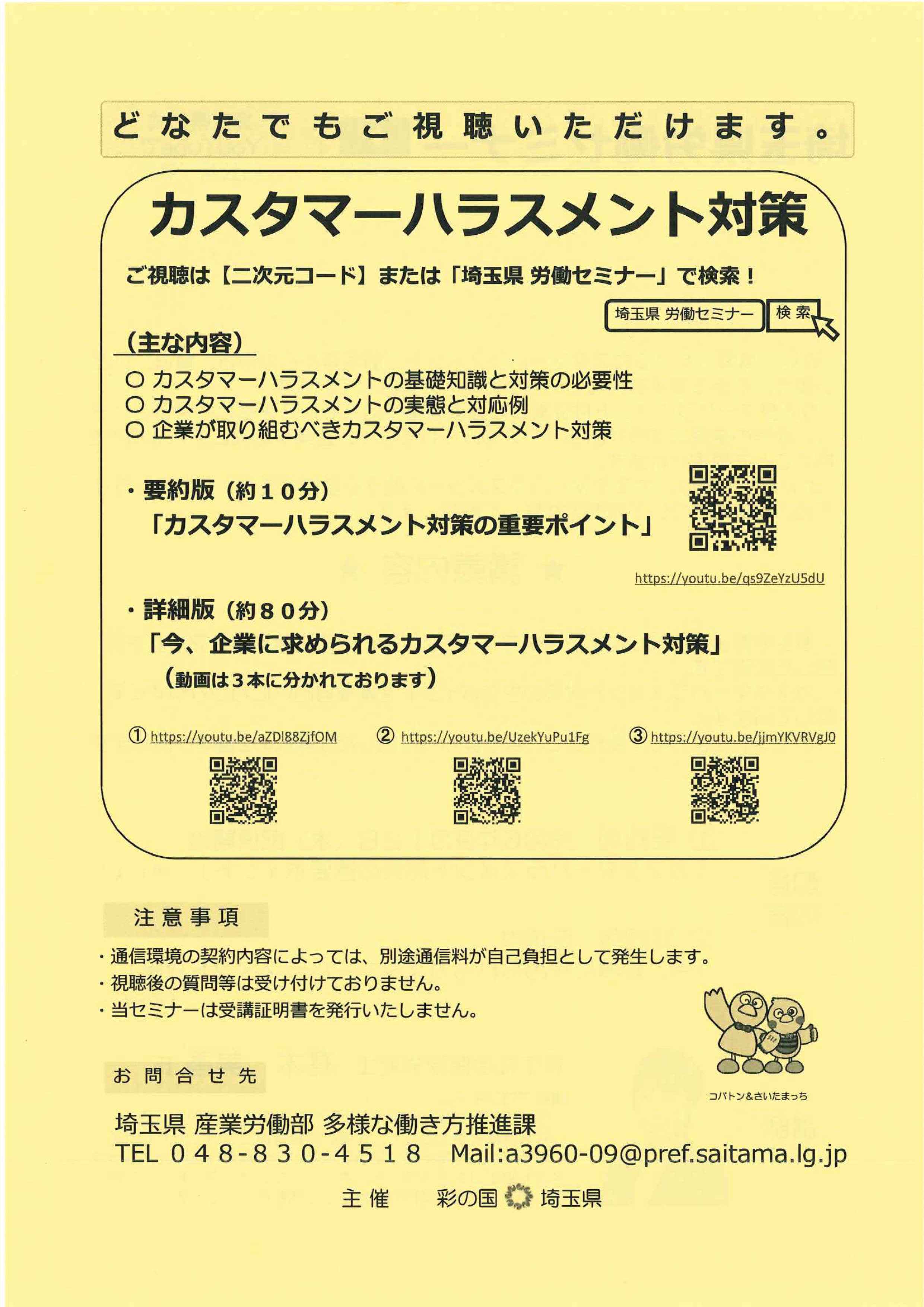 | お問い合わせ | 埼玉県 産業労働部 多様な働き方推進課 電話:048-830-4518 Mail:a3960-09@pref.saitama.lg.jp |