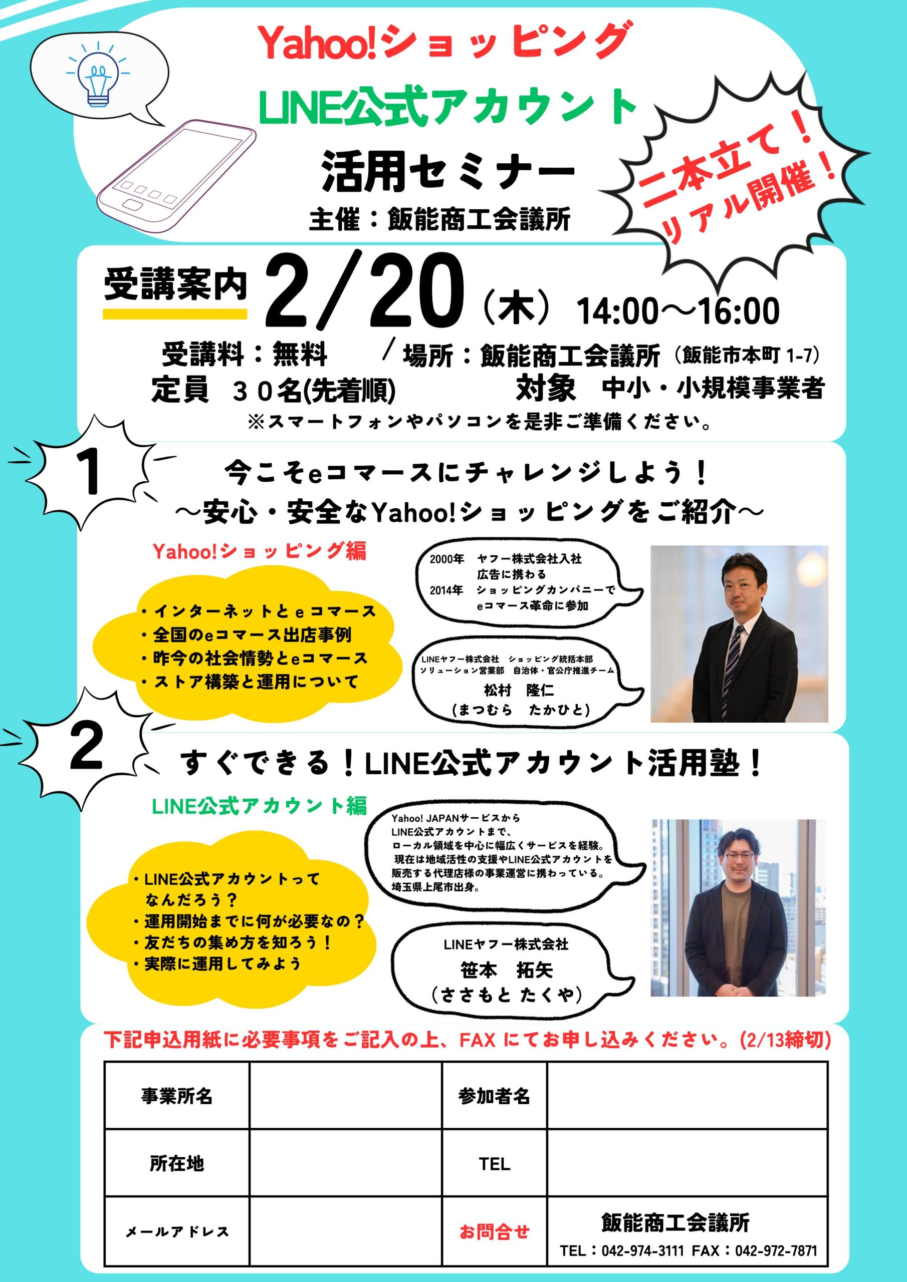 2/20(木)14:00~16:00、Yahoo!ショッピング/LINE公式アカウントセミナーを開催します。