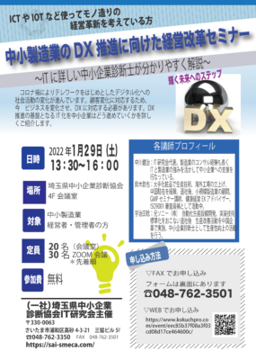 ■ 「中小製造業のDX推進に向けた経営改革セミナー」開催ご案内(2022年1月29日(土) | 埼玉県中小企業診断協会
