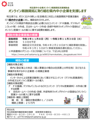 埼玉県中小企業オンライン販路開拓支援補助金 - 埼玉県(saitama.lg.jp)